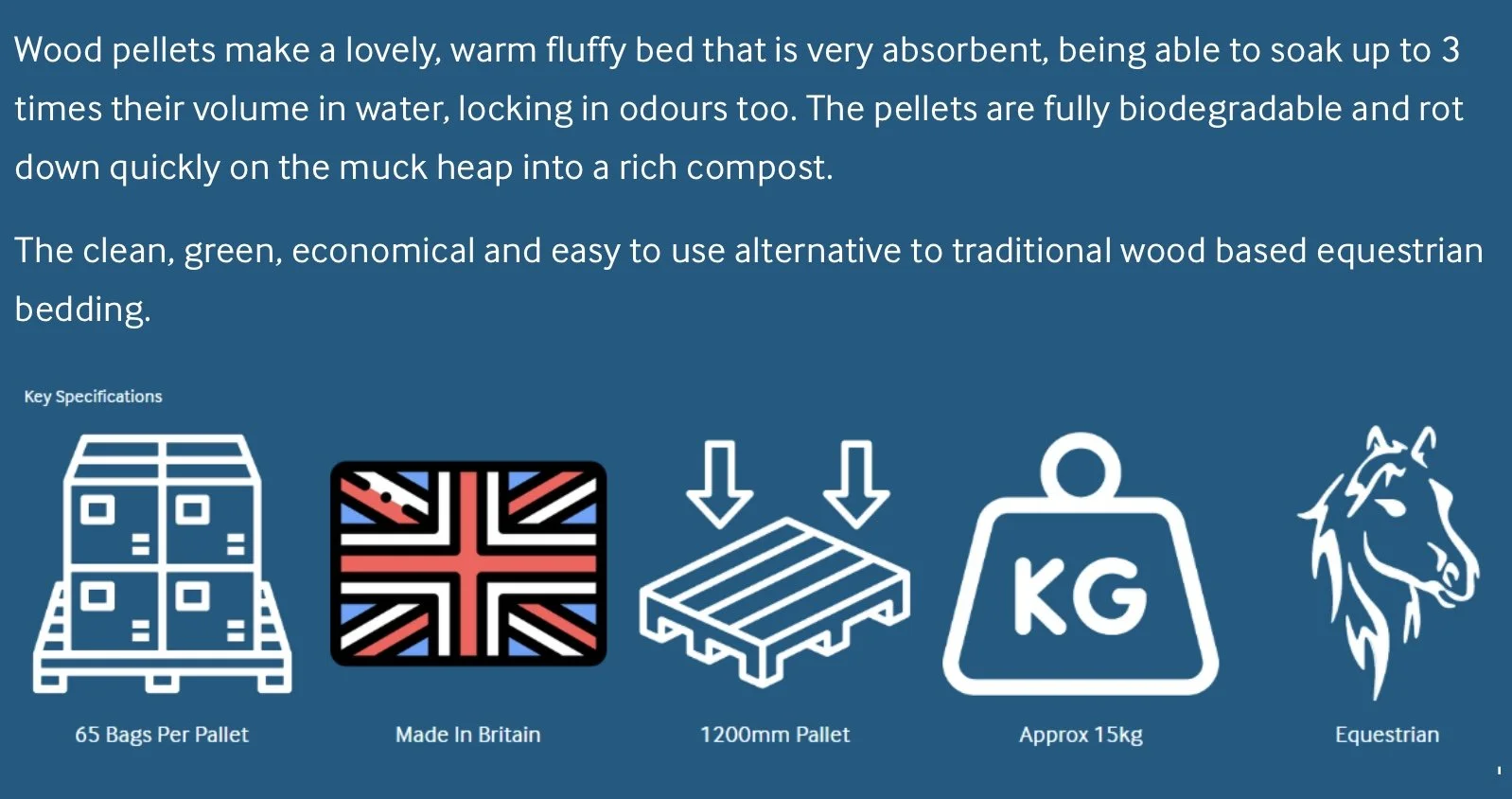 Snowflake Premium equine wood pellets are made from UK sourced 100% softwood. The wood is compressed to form a pellet using only lignin which is naturally found in the wood to bind them.